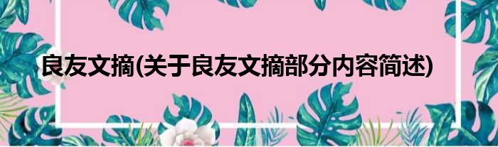 大家好,今天小方来说说一篇关于良友文摘,关于良友文摘部分内容简述的文章,那么现在就为大家来简单介绍下,希望对各位小伙伴们有所帮助。