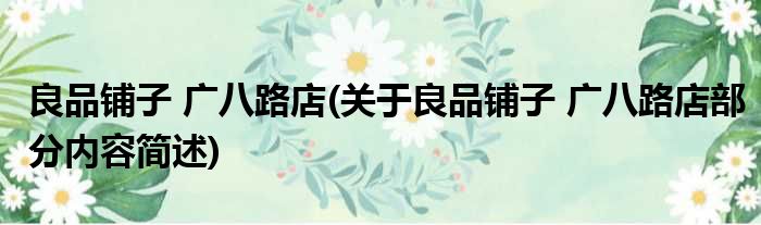 良品铺子 广八路店(关于良品铺子 广八路店部分内容简述)