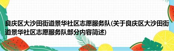良庆区大沙田街道景华社区志愿服务队(关于良庆区大沙田街道景华社区志愿服务队部分内容简述)