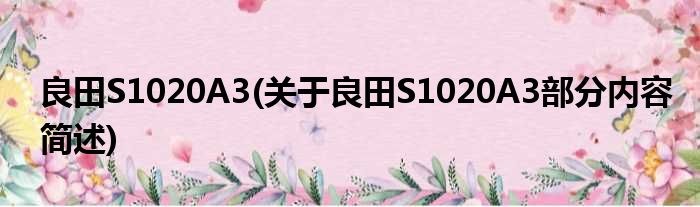 良田S1020A3(关于良田S1020A3部分内容简述)