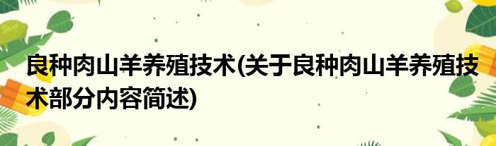 良种肉山羊养殖技术(关于良种肉山羊养殖技术部分内容简述)
