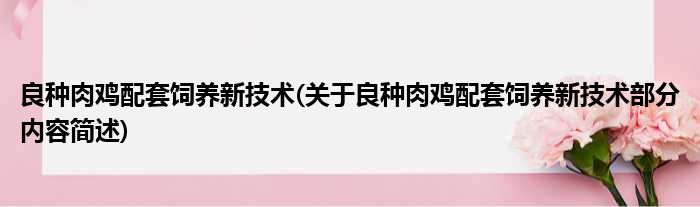导读 大家好,今天小方来说说一篇关于良种肉鸡配套饲养新技术,关于良种肉鸡配套饲养新技术部分内容简述的文章,那么现在就为大家来简单介绍下,
