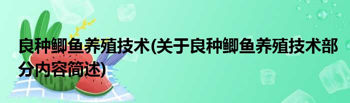 良种鲫鱼养殖技术(关于良种鲫鱼养殖技术部分内容简述)