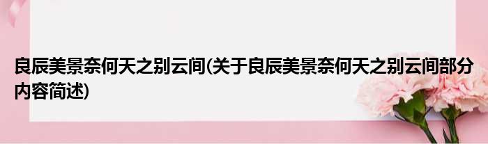 大家好,今天小方来说说一篇关于良辰美景奈何天之别云间,关于良辰美景奈何天之别云间部分内容简述的文章,那么现在就为大家来简单介绍下,希望对各位小伙伴们有所帮助。