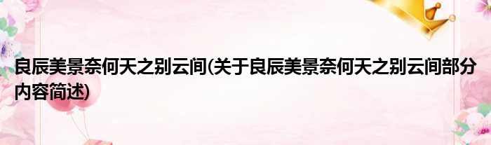 导读 大家好,今天小方来说说一篇关于良辰美景奈何天之别云间,关于良辰美景奈何天之别云间部分内容简述的文章,那么现在就为大家来简单介绍下,