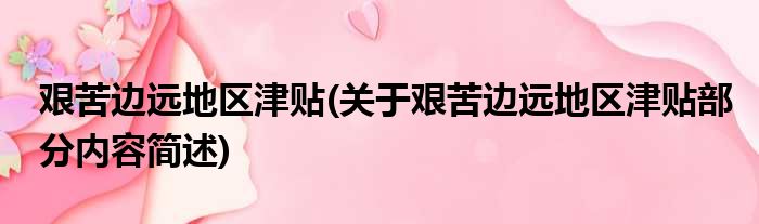 艰苦边远地区津贴(关于艰苦边远地区津贴部分内容简述)