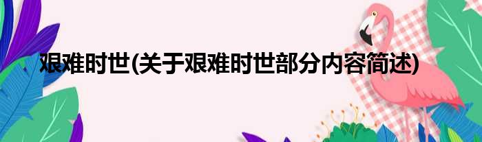 导读 大家好,今天小方来说说一篇关于艰难时世,关于艰难时世部分内容简述的文章,那么现在就为大家来简单介绍下,希望对各位小伙伴们有所帮助。