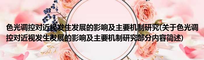 导读 大家好,今天小方来说说一篇关于色光调控对近视发生发展的影响及主要机制研究,关于色光调控对近视发生发展的影响及主要机制研究部分内容简