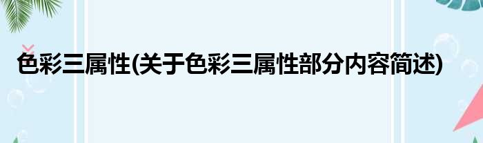 大家好,今天小方来说说一篇关于色彩三属性,关于色彩三属性部分内容简述的文章,那么现在就为大家来简单介绍下,希望对各位小伙伴们有所帮助。