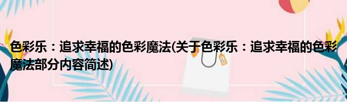 导读 大家好,今天小方来说说一篇关于色彩乐:追求幸福的色彩魔法,关于色彩乐:追求幸福的色彩魔法部分内容简述的文章,那么现在就为大家来简单