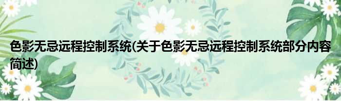 色影无忌远程控制系统(关于色影无忌远程控制系统部分内容简述)