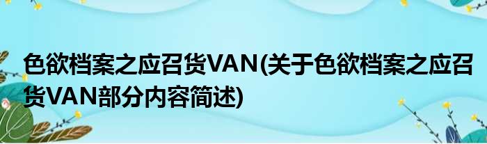 色欲档案之应召货VAN(关于色欲档案之应召货VAN部分内容简述)