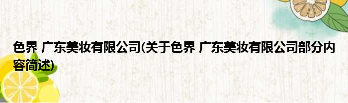 色界 广东美妆有限公司(关于色界 广东美妆有限公司部分内容简述)
