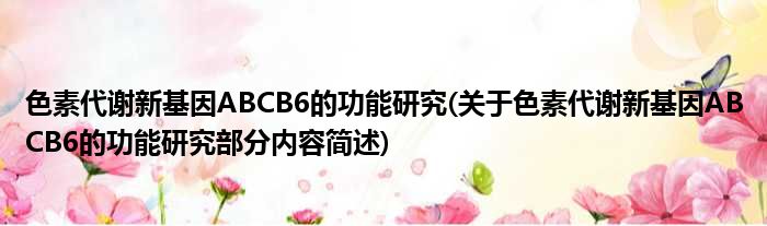 色素代谢新基因ABCB6的功能研究(关于色素代谢新基因ABCB6的功能研究部分内容简述)