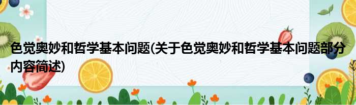 色觉奥妙和哲学基本问题(关于色觉奥妙和哲学基本问题部分内容简述)