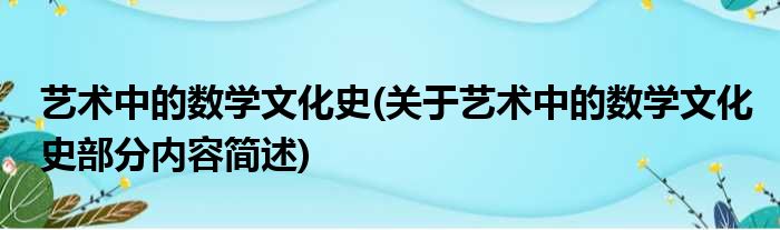 艺术中的数学文化史(关于艺术中的数学文化史部分内容简述)