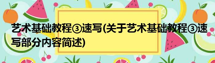 艺术基础教程③速写(关于艺术基础教程③速写部分内容简述)