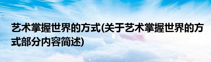艺术掌握世界的方式(关于艺术掌握世界的方式部分内容简述)