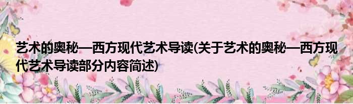 导读 大家好,今天小方来说说一篇关于艺术的奥秘—西方现代艺术导读,关于艺术的奥秘—西方现代艺术导读部分内容简述的文章,那么现在就为大家来
