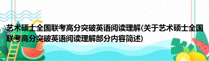 艺术硕士全国联考高分突破英语阅读理解(关于艺术硕士全国联考高分突破英语阅读理解部分内容简述)
