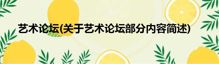 大家好,今天小方来说说一篇关于艺术论坛,关于艺术论坛部分内容简述的文章,那么现在就为大家来简单介绍下,希望对各位小伙伴们有所帮助。