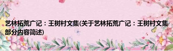 导读 大家好,今天小方来说说一篇关于艺林拓荒广记:王树村文集,关于艺林拓荒广记:王树村文集部分内容简述的文章,那么现在就为大家来简单介绍