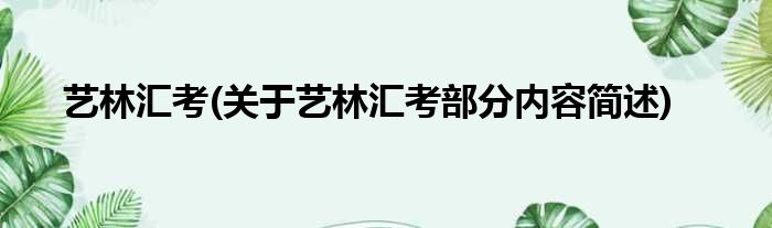 导读 大家好,今天小方来说说一篇关于艺林汇考,关于艺林汇考部分内容简述的文章,那么现在就为大家来简单介绍下,希望对各位小伙伴们有所帮助。