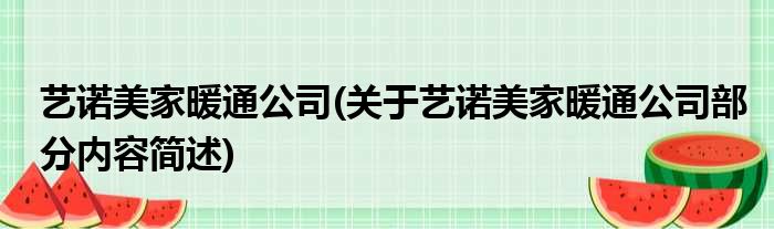 艺诺美家暖通公司(关于艺诺美家暖通公司部分内容简述)