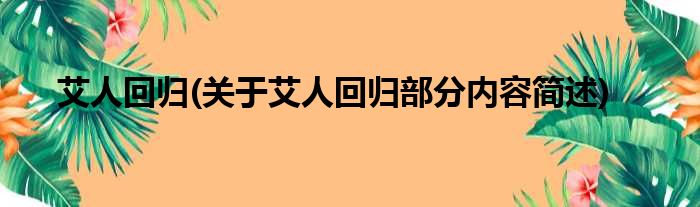 导读 大家好,今天小方来说说一篇关于艾人回归,关于艾人回归部分内容简述的文章,那么现在就为大家来简单介绍下,希望对各位小伙伴们有所帮助。