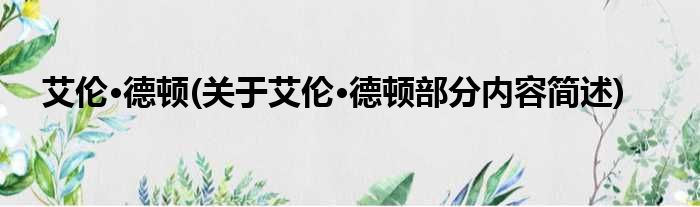 艾伦·德顿(关于艾伦·德顿部分内容简述)