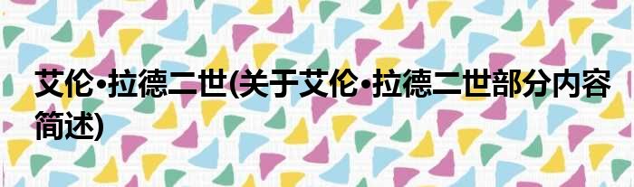 艾伦·拉德二世(关于艾伦·拉德二世部分内容简述)