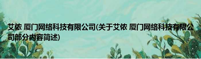 艾侬 厦门网络科技有限公司(关于艾侬 厦门网络科技有限公司部分内容简述)