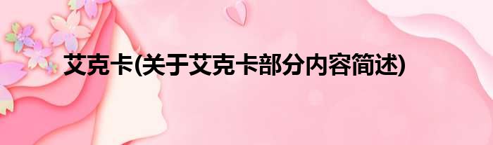 导读 大家好,今天小方来说说一篇关于艾克卡,关于艾克卡部分内容简述的文章,那么现在就为大家来简单介绍下,希望对各位小伙伴们有所帮助。