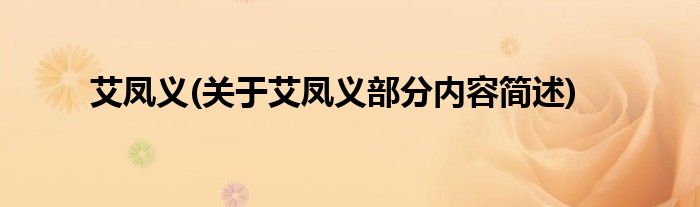 导读 大家好,今天小方来说说一篇关于艾凤义,关于艾凤义部分内容简述的文章,那么现在就为大家来简单介绍下,希望对各位小伙伴们有所帮助。