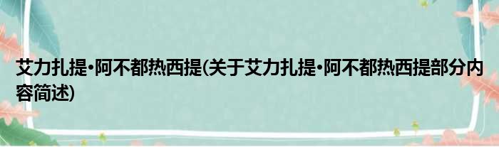 艾力扎提·阿不都热西提(关于艾力扎提·阿不都热西提部分内容简述)