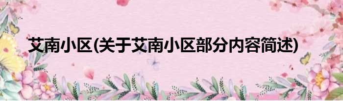 导读 大家好,今天小方来说说一篇关于艾南小区,关于艾南小区部分内容简述的文章,那么现在就为大家来简单介绍下,希望对各位小伙伴们有所帮助。