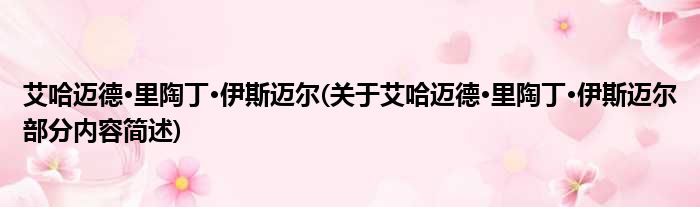 艾哈迈德·里陶丁·伊斯迈尔(关于艾哈迈德·里陶丁·伊斯迈尔部分内容简述)
