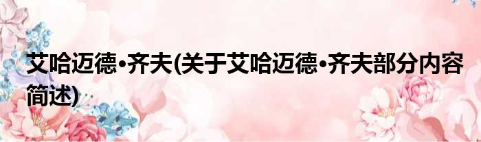 艾哈迈德·齐夫(关于艾哈迈德·齐夫部分内容简述)