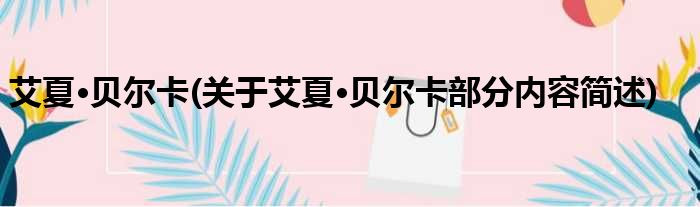 导读 大家好,今天小方来说说一篇关于艾夏·贝尔卡,关于艾夏·贝尔卡部分内容简述的文章,那么现在就为大家来简单介绍下,希望对各位小伙伴们有