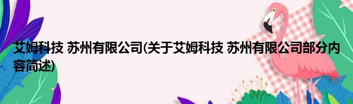艾姆科技 苏州有限公司(关于艾姆科技 苏州有限公司部分内容简述)