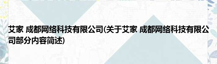 艾家 成都网络科技有限公司(关于艾家 成都网络科技有限公司部分内容简述)