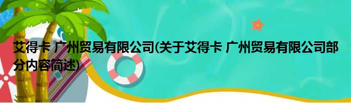 艾得卡 广州贸易有限公司(关于艾得卡 广州贸易有限公司部分内容简述)
