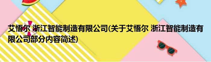艾悟尔 浙江智能制造有限公司(关于艾悟尔 浙江智能制造有限公司部分内容简述)