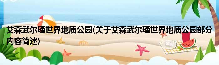导读 大家好,今天小方来说说一篇关于艾森武尔瑾世界地质公园,关于艾森武尔瑾世界地质公园部分内容简述的文章,那么现在就为大家来简单介绍下,