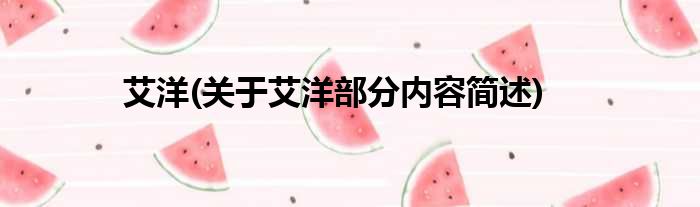 导读 大家好,今天小方来说说一篇关于艾洋,关于艾洋部分内容简述的文章,那么现在就为大家来简单介绍下,希望对各位小伙伴们有所帮助。