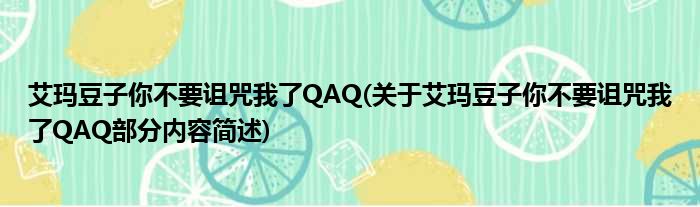 艾玛豆子你不要诅咒我了QAQ(关于艾玛豆子你不要诅咒我了QAQ部分内容简述)