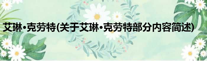 导读 大家好,今天小方来说说一篇关于艾琳·克劳特,关于艾琳·克劳特部分内容简述的文章,那么现在就为大家来简单介绍下,希望对各位小伙伴们有