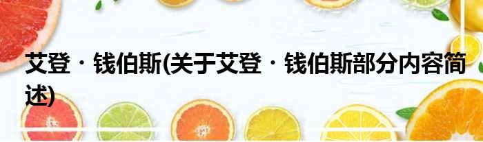 大家好,今天小方来说说一篇关于艾登・钱伯斯,关于艾登・钱伯斯部分内容简述的文章,那么现在就为大家来简单介绍下,希望对各位小伙伴们有所帮助。