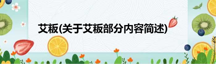 导读 大家好,今天小方来说说一篇关于艾粄,关于艾粄部分内容简述的文章,那么现在就为大家来简单介绍下,希望对各位小伙伴们有所帮助。