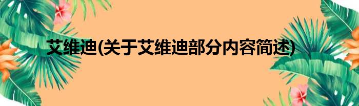 导读 大家好,今天小方来说说一篇关于艾维迪,关于艾维迪部分内容简述的文章,那么现在就为大家来简单介绍下,希望对各位小伙伴们有所帮助。